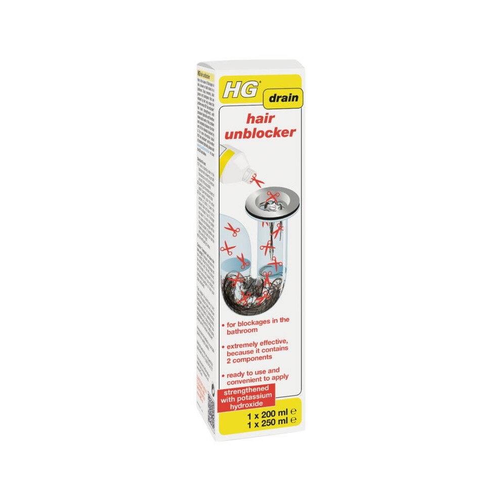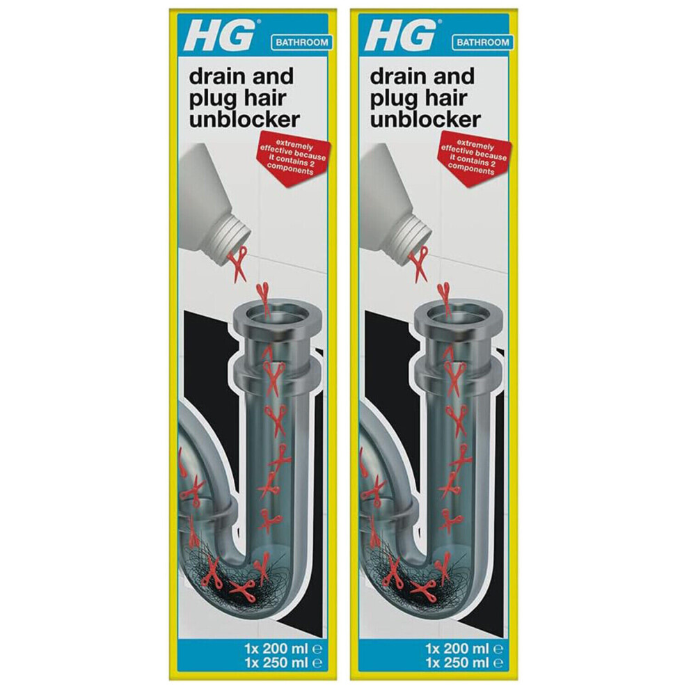 HG Drain and Plug Hair Unblocker, Removes Hair from Showers, Baths, Sinks & Plug Holes, Unblocks Blocked Bathroom Pipes & Drains (200 ml + 250 ml)