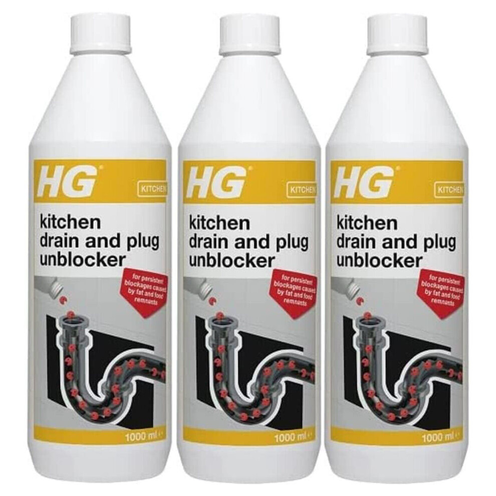 3 x HG Kitchen Drain And Plug Unblocker - 1 Litre