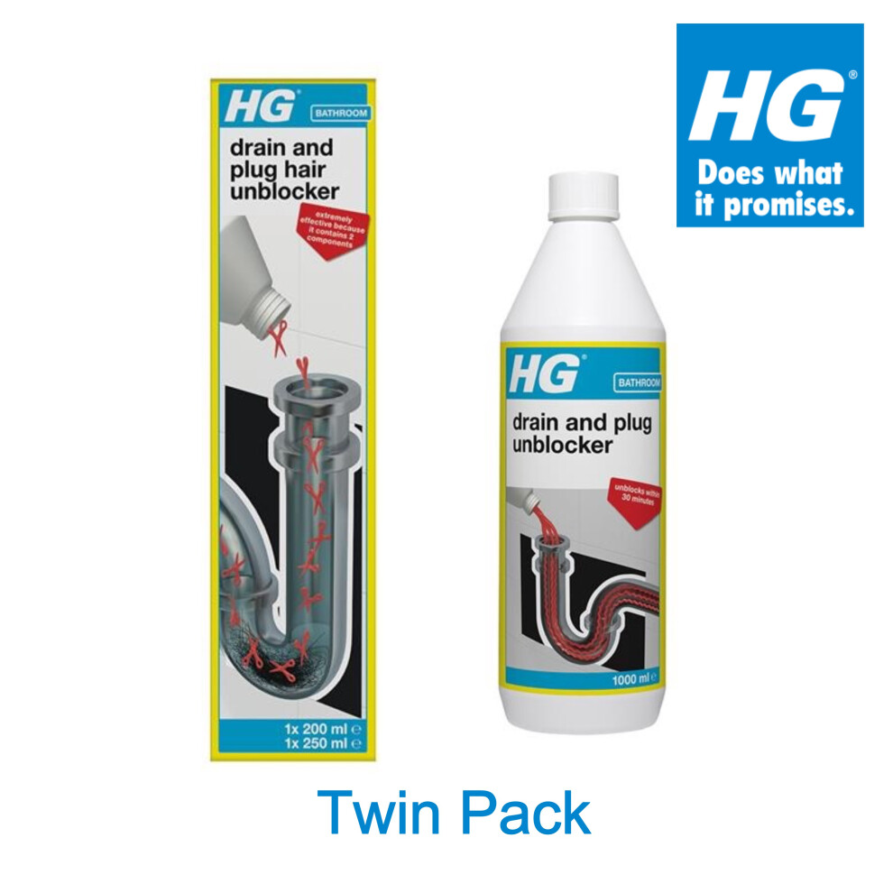HG Drain and Plug Hair Unblocker Twin Pack - 450ml + 1L