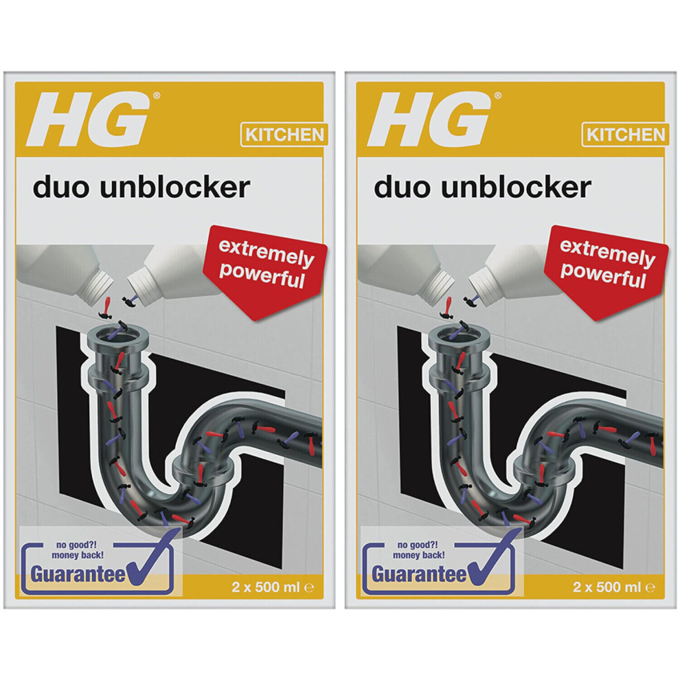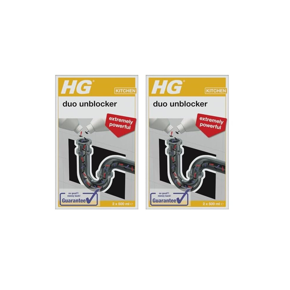 HG Duo Unblocker - Powerful Drain Cleaner, for Kitchen Sink or Bathroom Pipes - 2 x 500 ml