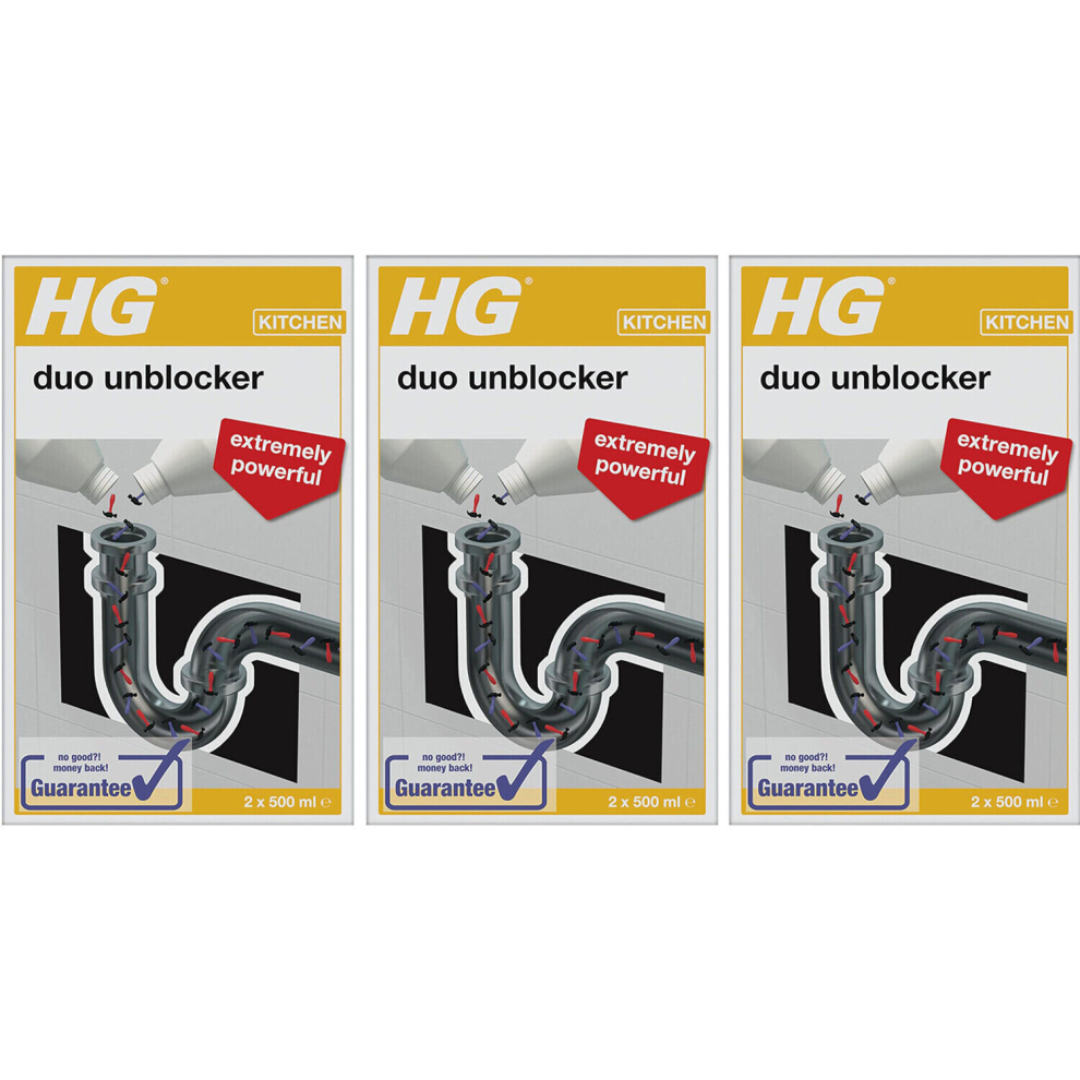 3 x HG Kitchen Duo Unblocker Kitchen Sink Quick And Powerful Drain Unblocker - 2 x 500ml