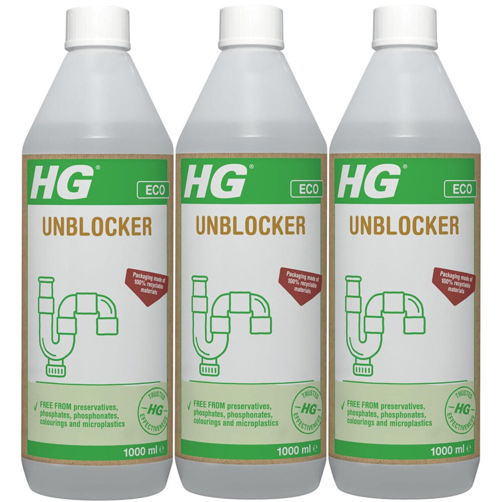 3 x HG ECO Drain Unblocker 1 Litre Kitchen Sink & Bathroom Sink - White