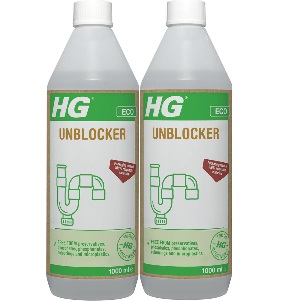 681100106 2 x HG ECO Drain Unblocker 1 Litre - Heavy Duty for Kitchen & Bathroom Sinks, Eco-friendly, Non-toxic, Paraben-free