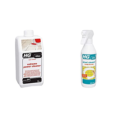 HG 435100106 Extreme Power Cleaner 1L - Professional and Powerful Tile Cleaner - Grease and Dirt Remover & 591050106 Ready-to-use 500 ml Removes Stubborn Dirt from Grout Between Wall and Floor Tiles