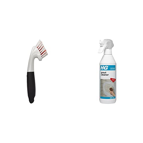 OXO Good Grips Grout Brush & HG Grout Cleaner, Ready-To-Use Tile Grouting Cleaning Spray, Removes Stubborn Dirt & Stains Between Tiled Walls & Floors (500ml Spray) - 591050106