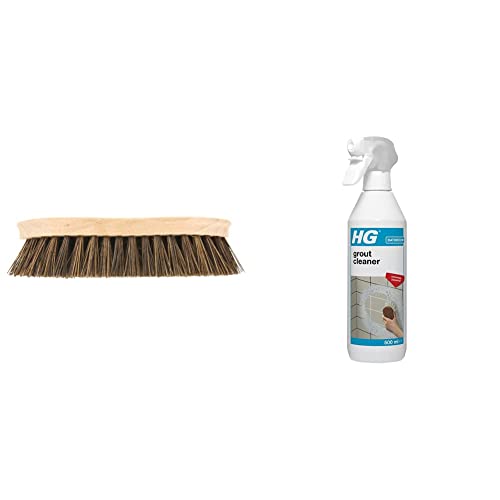 Elliott Wooden Hand Scrubbing Brush with stiff natural Bassine bristles, heavy duty multipurpose & HG Grout Cleaner, Ready-To-Use Tile Grouting Cleaning Spray, Removes Stubborn Dirt & Stains