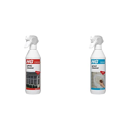 HG UPVC Powerful Cleaner, White - 500ml Spray (507050106) & Grout Cleaner, Ready-To-Use Tile Grouting Cleaning Spray, Removes Stubborn Dirt & Stains Between Tiled Walls (500ml Spray) - 591050106