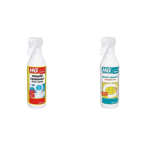 HG Mould Remover Foam Spray, Fast & Effective Mould Spray & Mildew Cleaner (500ml) 632050106 & Grout Cleaner, Ready-To-Use Tile Grouting Cleaning Spray(500ml Spray) 591050106