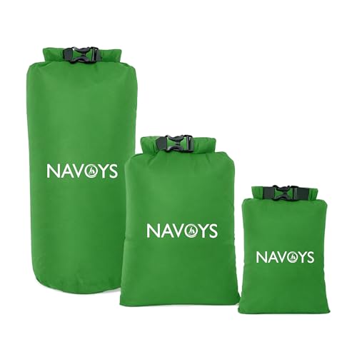 Navoys 3pc Waterproof Dry Sacks Set – 2L, 4L & 8L Roll-Top Dry Bags for Outdoor Camping, Hiking, Kayaking & Travel – 2000mm HH Waterproof Rating – Lightweight Green Sacks for Gear Protection