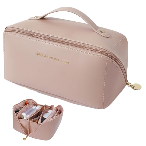 HhBdy Makeup Bag,PU Leather Waterproof Toiletry Bags for Women,Portable Large Capacity Travel Toiletry Bag with Handle and Compartment(Pink)