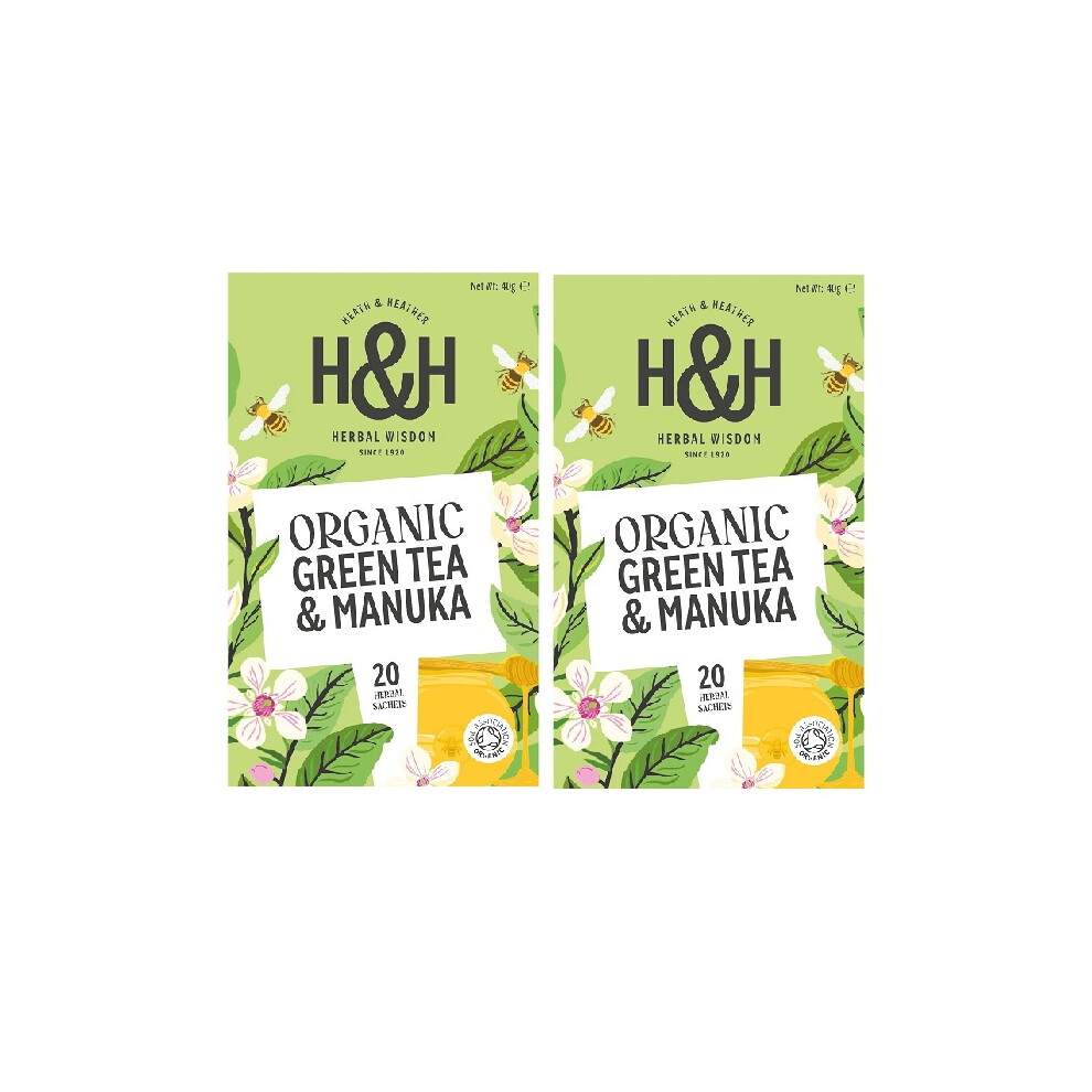 H&H Organic Green Tea with Manuka Honey - 20 Tea Bags Pack of 2