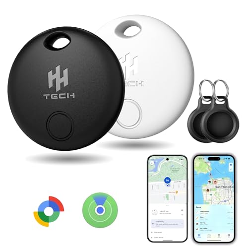 HH-Tech Dual-System Smart Tracker Tags Pack-2 (Compatible with iOS & Android), Works with Apple Find My & Google Find Hub, Bluetooth Item Finder for Keys, Wallet, Luggage, Bags, and More