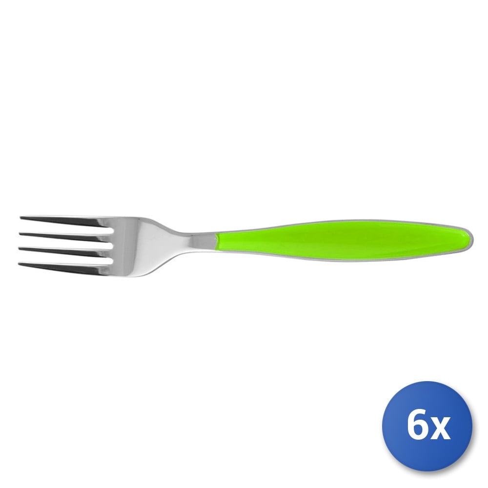 6x Table Forks Lady Stainless Steel And Green Plastic 20cm, Brand H&H