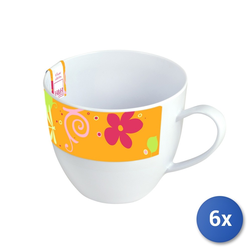 6x Jumbo Cups In Melamine Orange Decoration 600ml, Brand H&H
