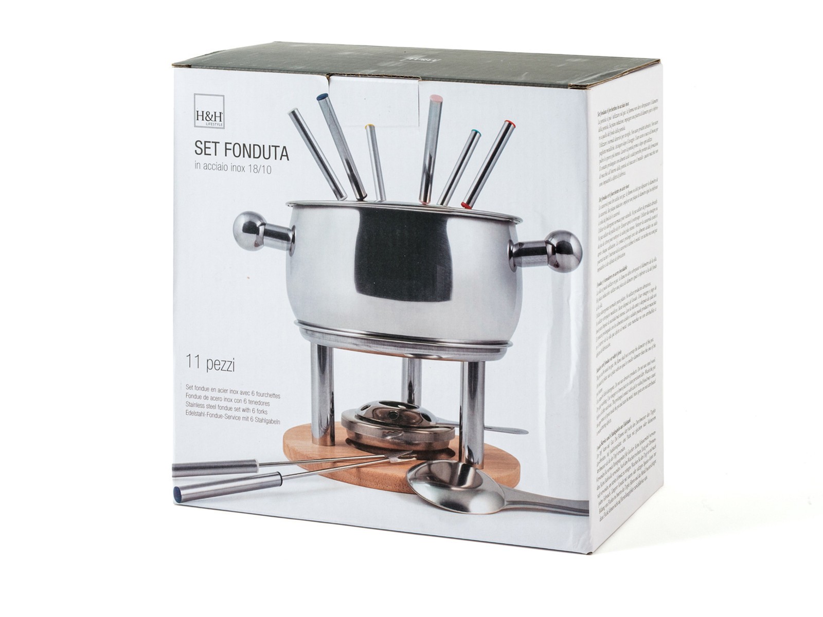 Fondue Service In Aluminum 15 pieces with wooden base 018f2060 brand H&H