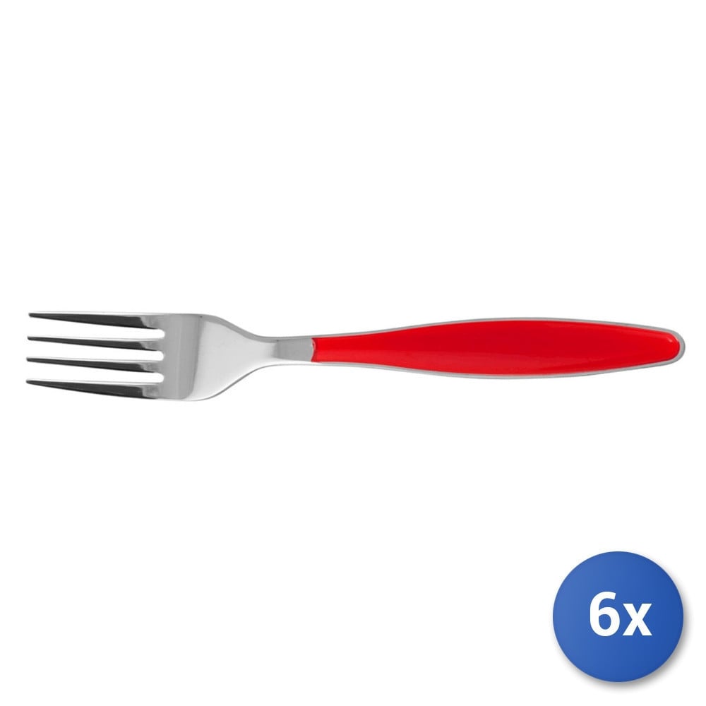 6x Table Forks Lady Inox And Plastic Red 20cm, Brand H&H