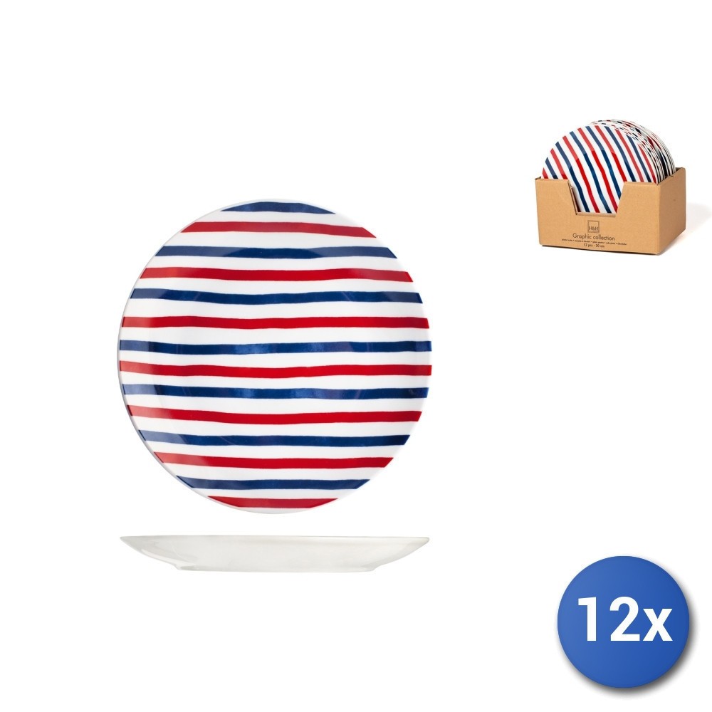 12x Fruit Plates In Porcelain, Brand H&H, 20cm, Graphic