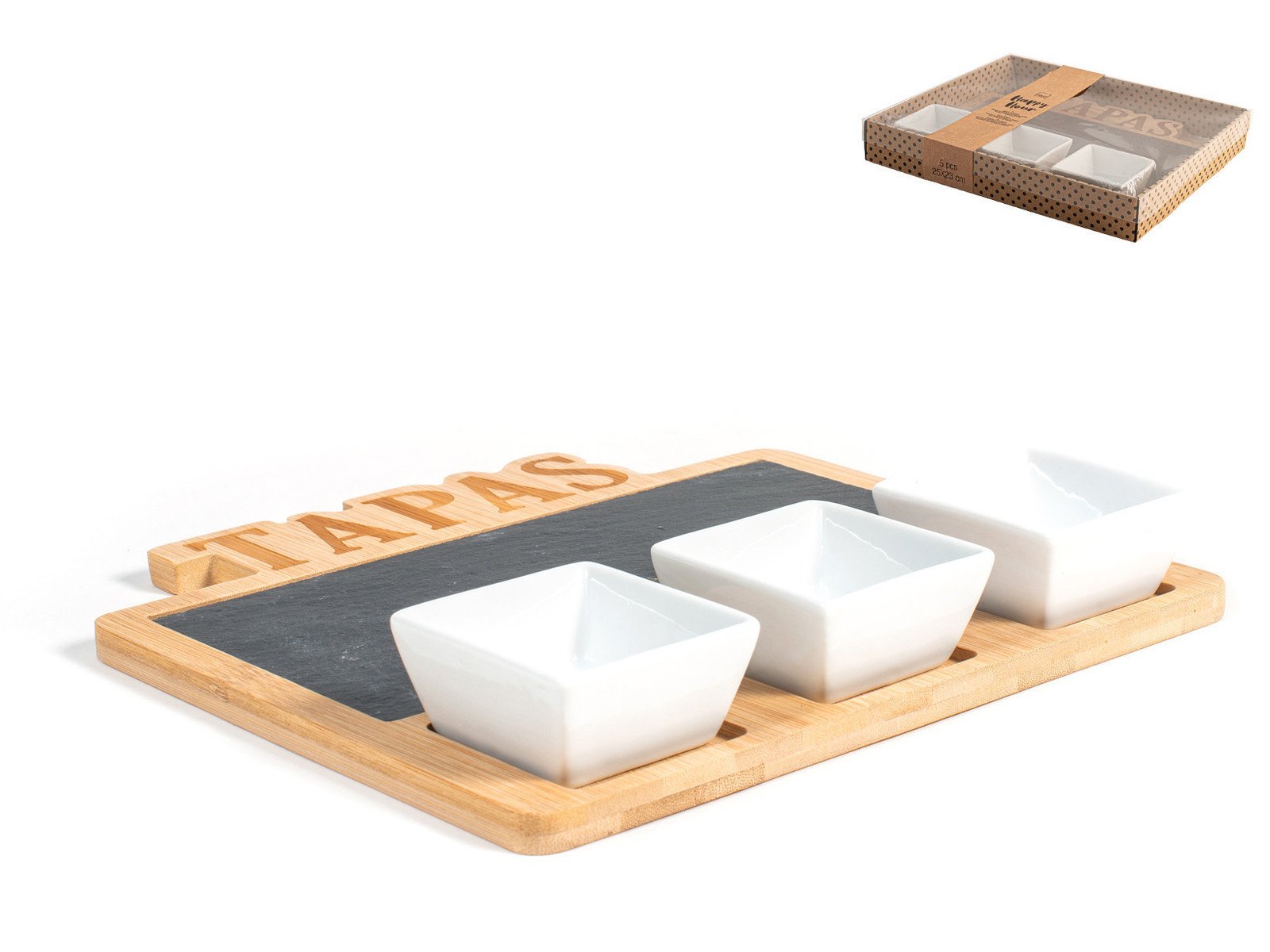 Set 5 Pieces Aperitif IN Slate And Bamboo, Brand H&h