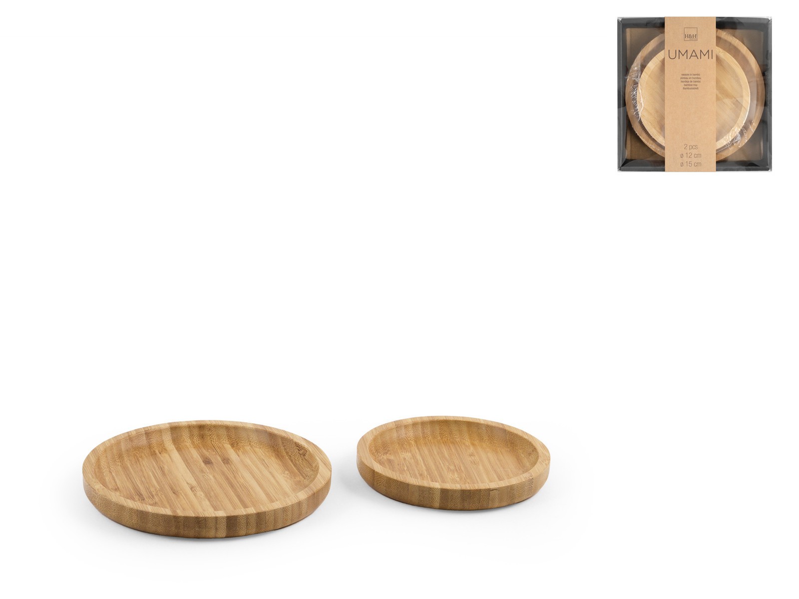 Set 2 Round Bamboo Plates, Brand H&H, 12cm and 15cm
