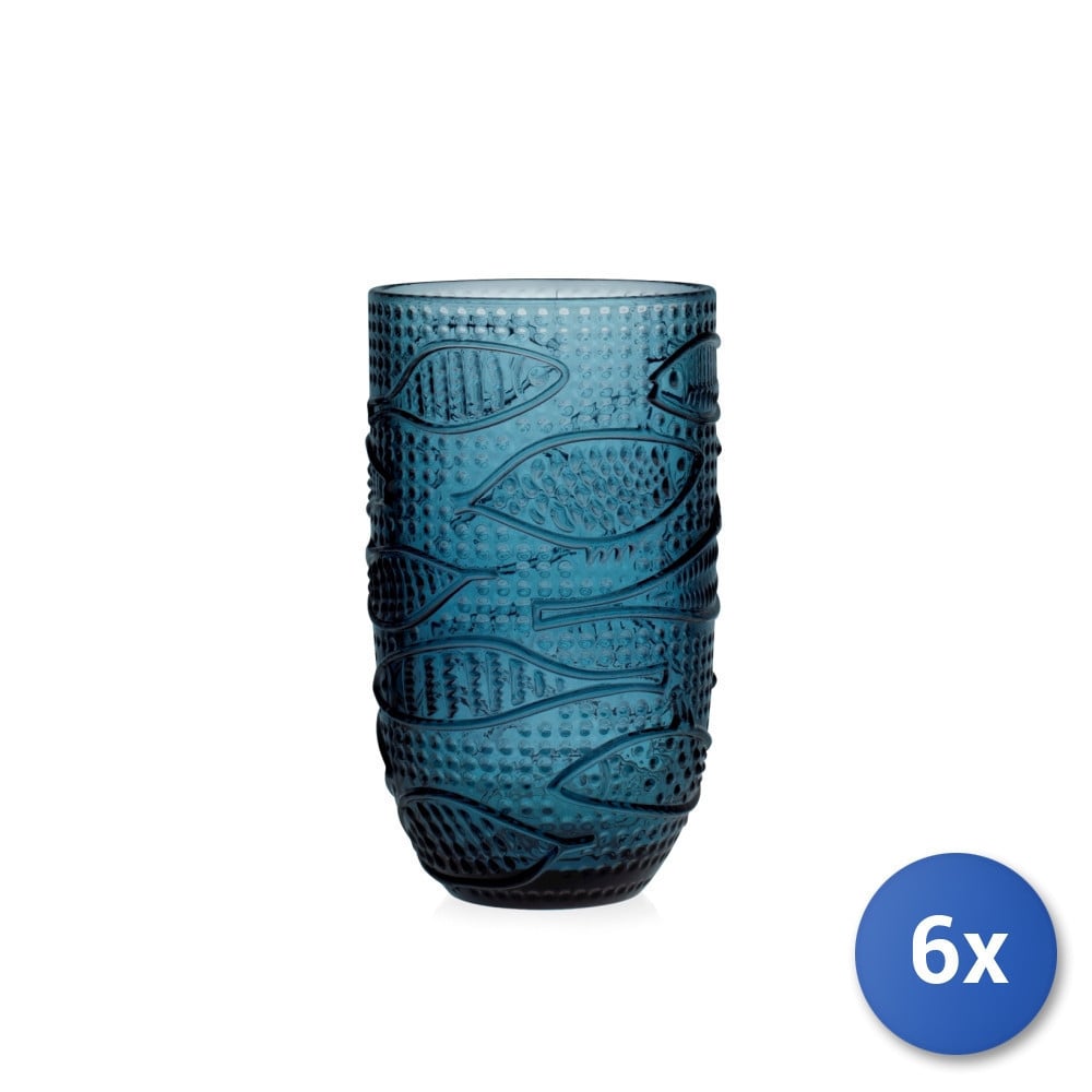 6 Glasses In Blue Atlantic Glass Cl45, Brand H&H