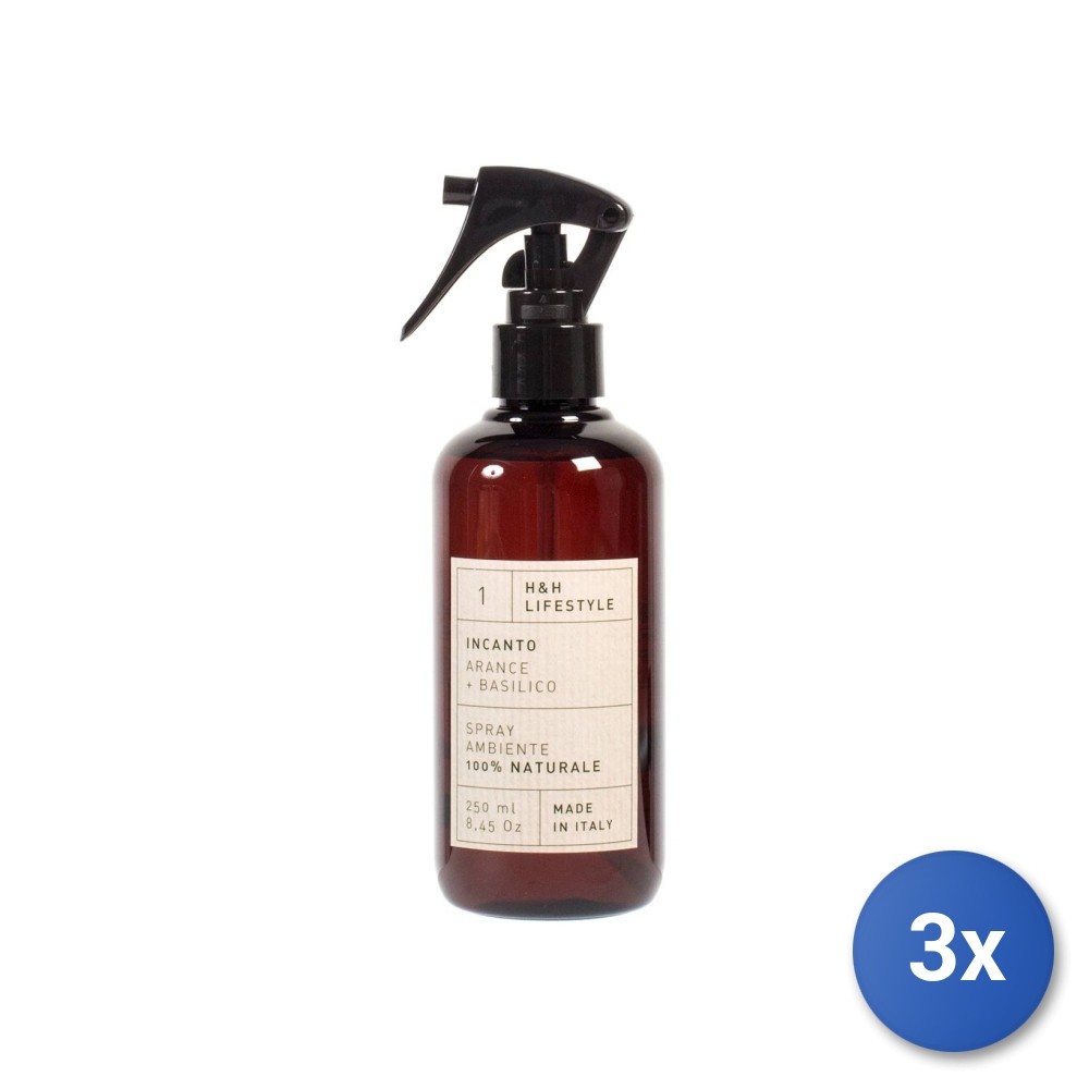 3x Natural Room Spray Brand H&H Incanto/Oranges/Basil 250 Ml