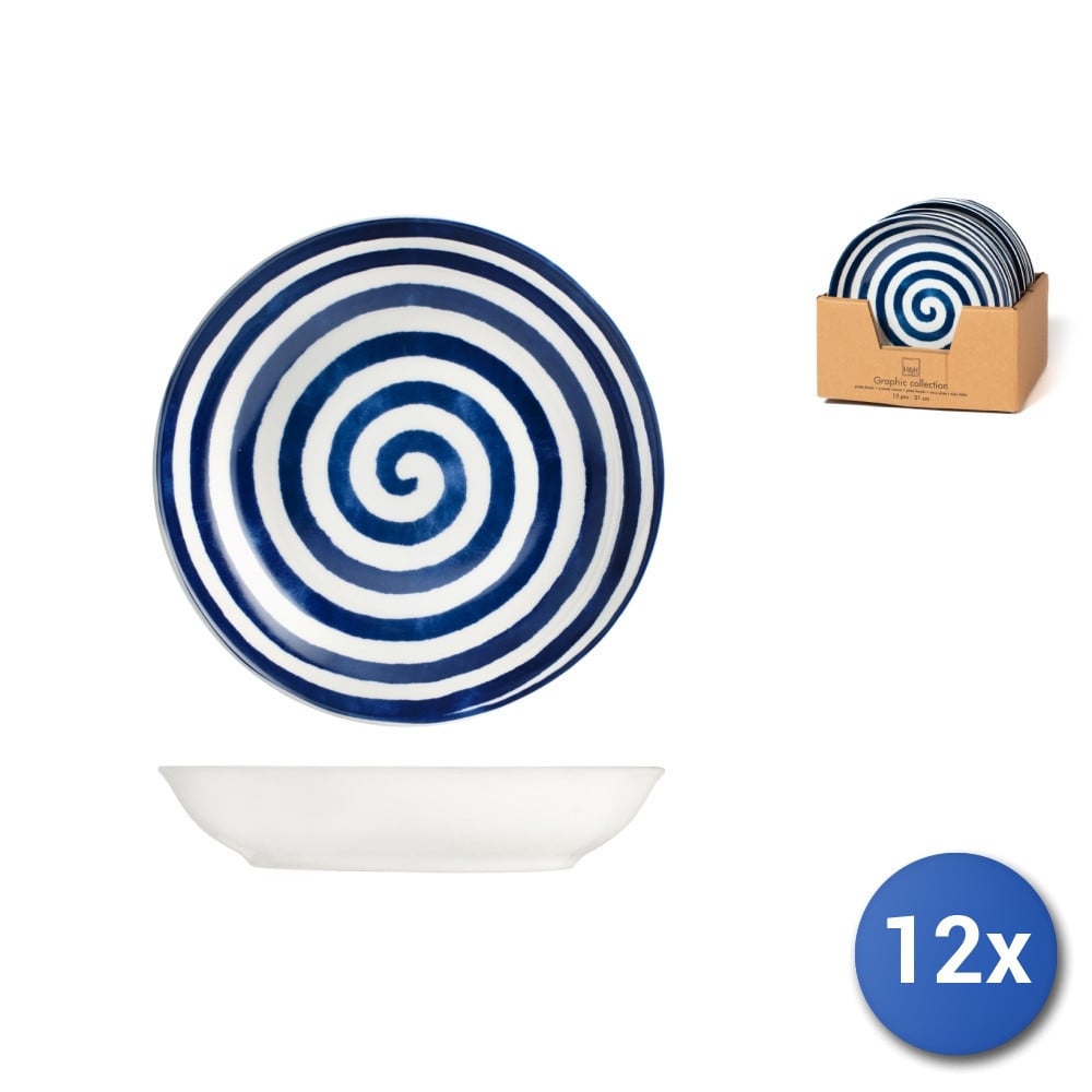 12x Deep Plates In Porcelain, Brand H&H, 21cm, Graphic