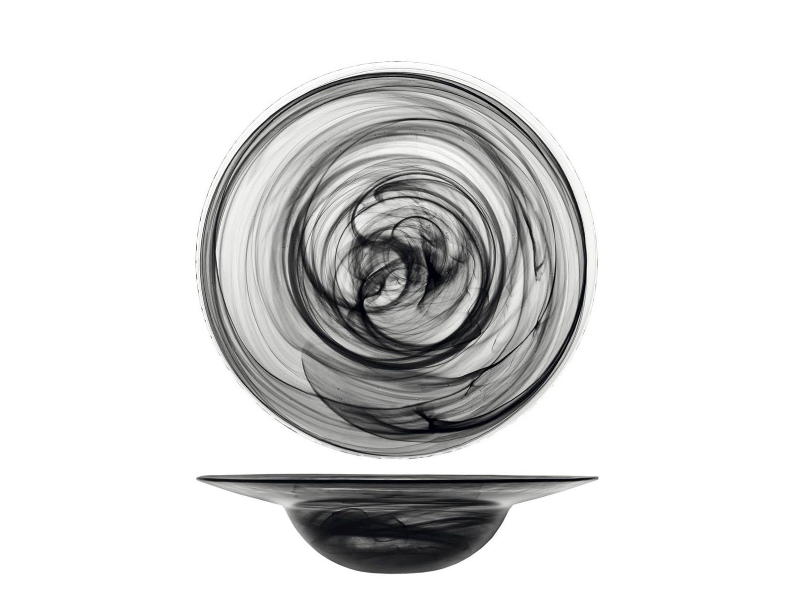 Set 6 Plates Brand H&H Alabaster Glass Black 28x2.5 cm