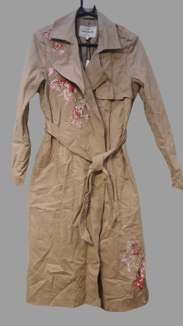 River Island Beige Embroidered Trench Coat UK 8 EU 34 LN002 HH 02