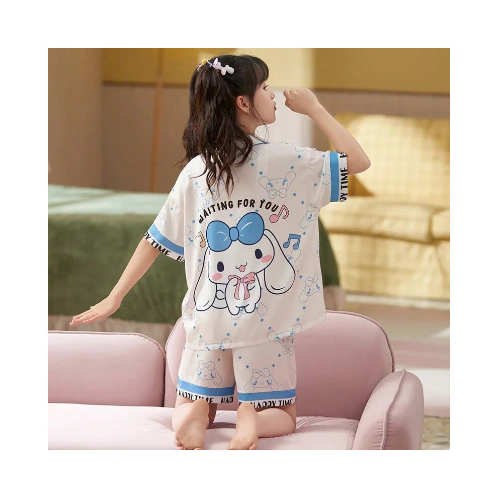 (HH, M for 153-160CM) 2Pcs Pochacco Kuromi Children Pajama Sets Cartoon Anime Sanrio Cinnamoroll Summer New Ice Silk Short Sleeve T-Shirt Tops Shorts