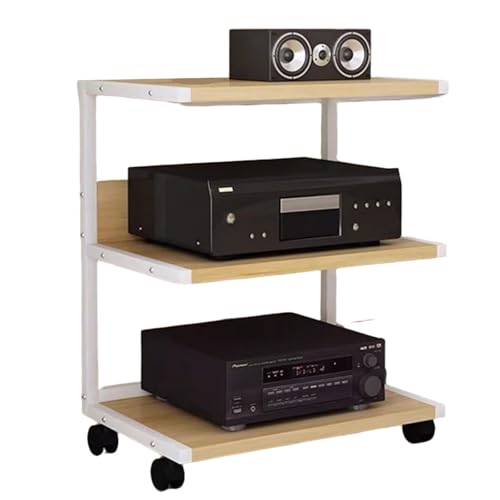 SZKTHD AV Receiver Cabinet Lacquered Speaker Stand Hi-Fi Audio Cabinet Suitable For Stereo Components Turntables CD Players Living Room(Wood color,70 * 55 * 65cm(3Tier))