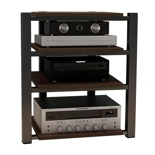 SZKTHD AV Receiver Cabinet Lacquered Speaker Stand Hi-Fi Audio Cabinet Suitable For Stereo Components Turntables CD Players Living Room(Brown,70 * 55 * 90cm(4Tier))