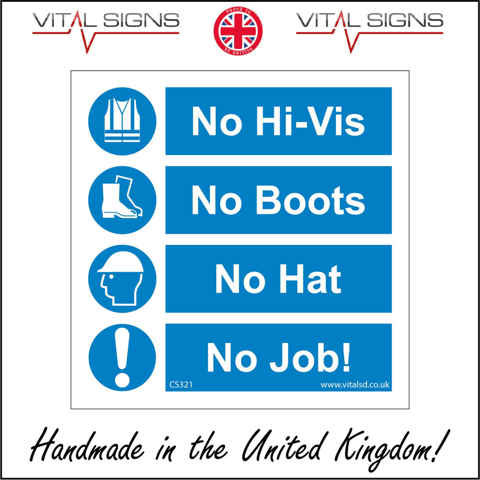 (200 x 200mm - 8 x 8, 1mm Pvc Foamex) CS321 No Hi-Vis No Boots No Hat No Job Sign Construction Hard Hat Head Gear Work 600mm x 600mm Magnetic - Vehicl