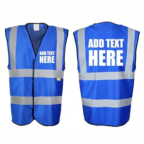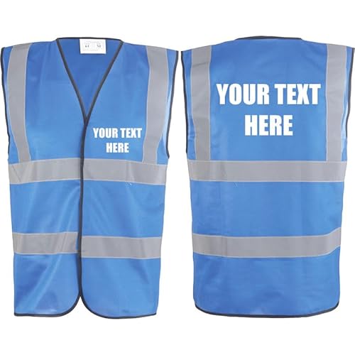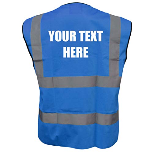 Personalised Custom Text Blue Hi Vis Viz Safety Vest Waistcoat, Reflective High Visibility Work Wear, Events, x-large