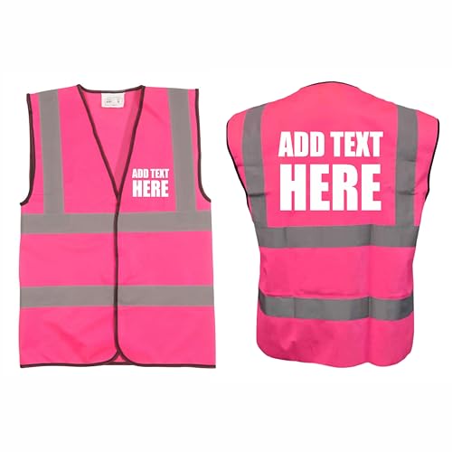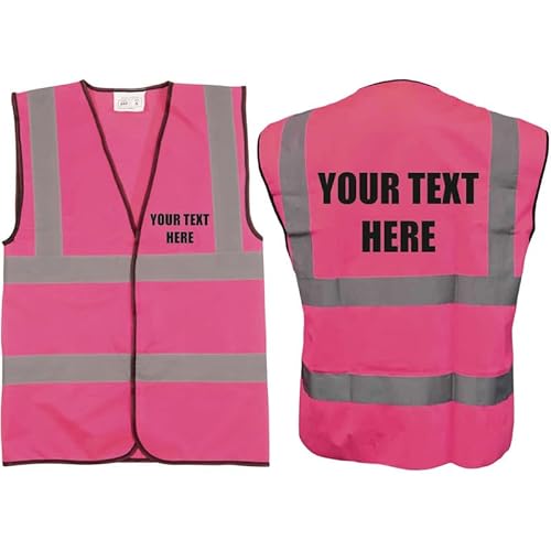 Hi Vis Vests - Personalised Hi Vis Vest Made of Durable Polyester- High Vis Vests with Reflective Vinyl Banding for Safety - Pink High Visibility Vest by Brook Hi Vis, Extra Large 44-46”