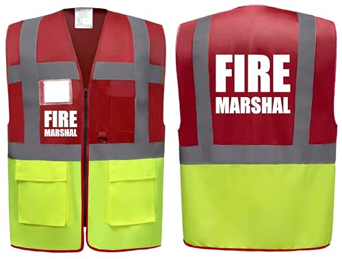 Brook Hi Vis UK Big Logo Fire Marshal Red/Yellow Zipped Hi Vis Vest High Visibility Safety Waistcoat Pockets Reflective Bands Company Compliance Event Staff, Alpha, L, Regular, Regular, Red/Yellow