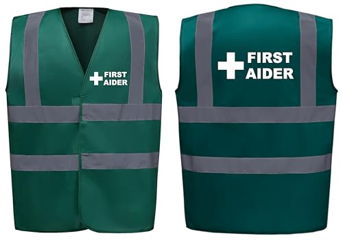 First Aider Premium Green Hi Vis Vest - High Visibility Safety Waistcoat with Reflective Bands for Company Compliance First Aid & Medical Staff, Brook Hi Vis (Green, Large)