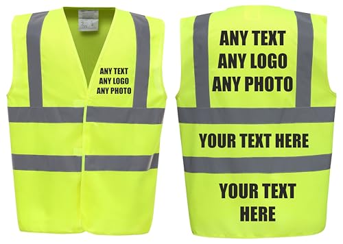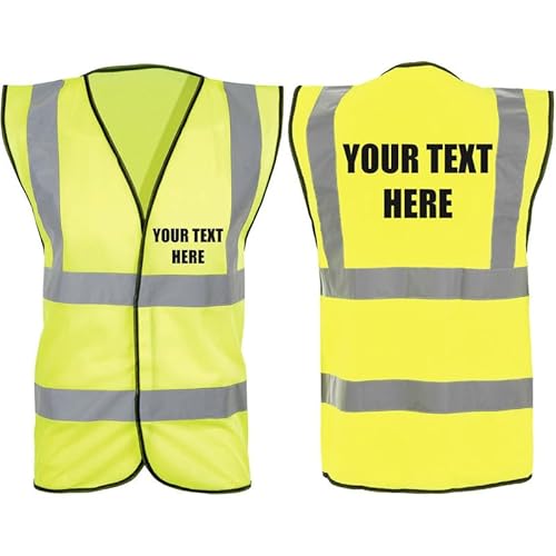Brook Hi Vis UK - Premium YELLOW Hi Vis Safety Vest Custom Printed With Your Logo Or Text Waistcoat, Personalise Front and Back, Brand Your Company, Small to 5XL (Yellow, XLarge)