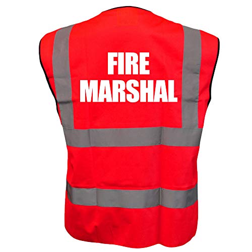 FIRE MARSHAL Red Hi Vis Viz Reflective Vest Waistcoat Printed Front and Back Safety Workwear- Printed By Brook Hi Vis, Medium