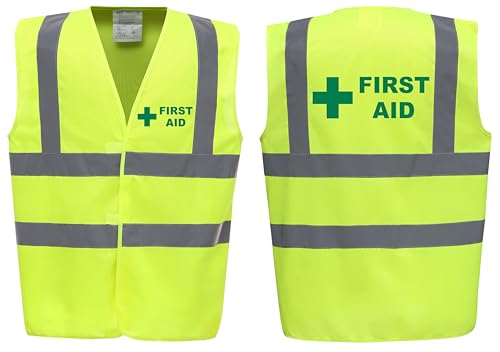 First Aid Premium Yellow Hi Vis Vest - High Visibility Safety Waistcoat with Reflective Bands for Company Compliance First Aid & Medical Staff, Brook Hi Vis (Yellow, Large)