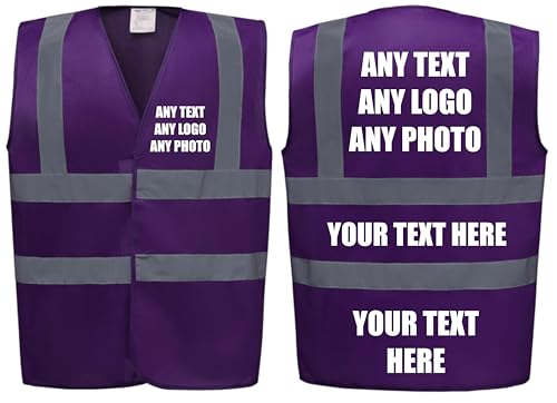 Premium PURPLE Hi Vis Safety Vest Custom Printed With Your Logo Or Text Waistcoat, Personalise Front and Back, Brand Your Company, Small to 3XL, Brook Hi Vis (PURPLE, Large)