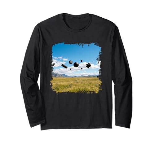Floating Objects Sky Surreal Landscape Mystery Graphic Long Sleeve T-Shirt