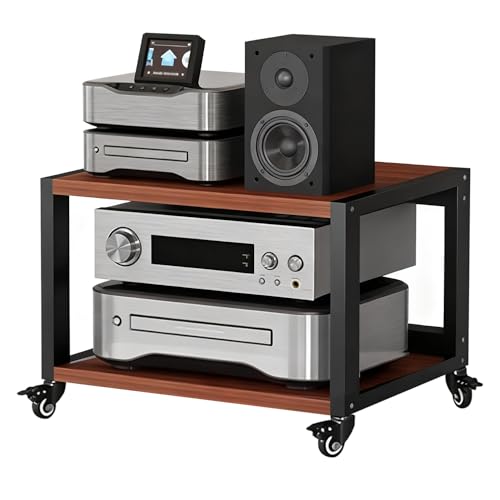 Heavy Du 2/3/4/5 Tier o Rack on Wheels AV Ma Stand for HiFi Amplifiers Record Players & o/Video Equint Sto (Black/Brown L55xW50xH40cm)