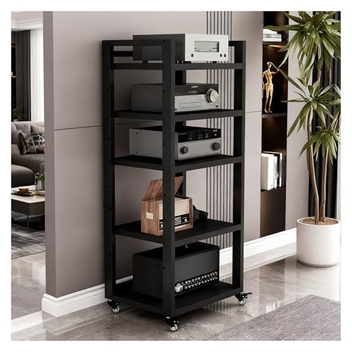 Wzmazingly 5-Tier HiFi Rack, Record Player Stand With Wheels And Adjustable Shelves, Floor-standing Movable Audio Media Component Rack For Game Rooms, Recording Studios(Black,50x40x120cm)