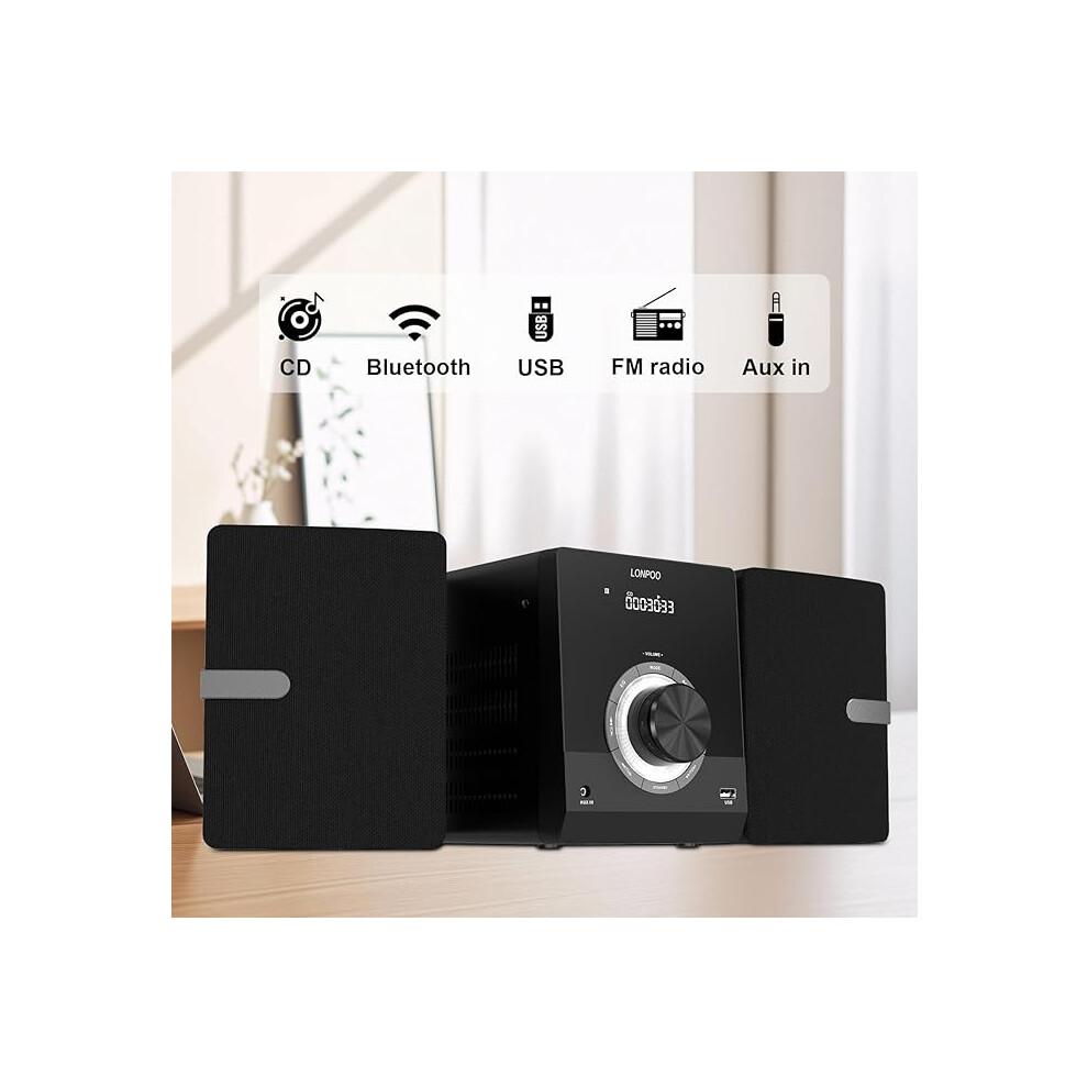 Compact Micro Hi-Fi Stereo System with CD Player, Bluetooth, FM Radio, USB Playback, Aux-input & Earphone output, 40W Stereo Sound