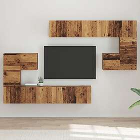 vidaXL 8-delad TV-väggmodul med LED gammalt trä konstruerat trä