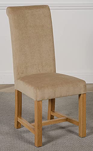 Oak Furniture King Montana Beige Fabric Chairs for Dining Room or Kitchen | High Back Beige Dining Chairs with Oak Legs and Nylon Glides