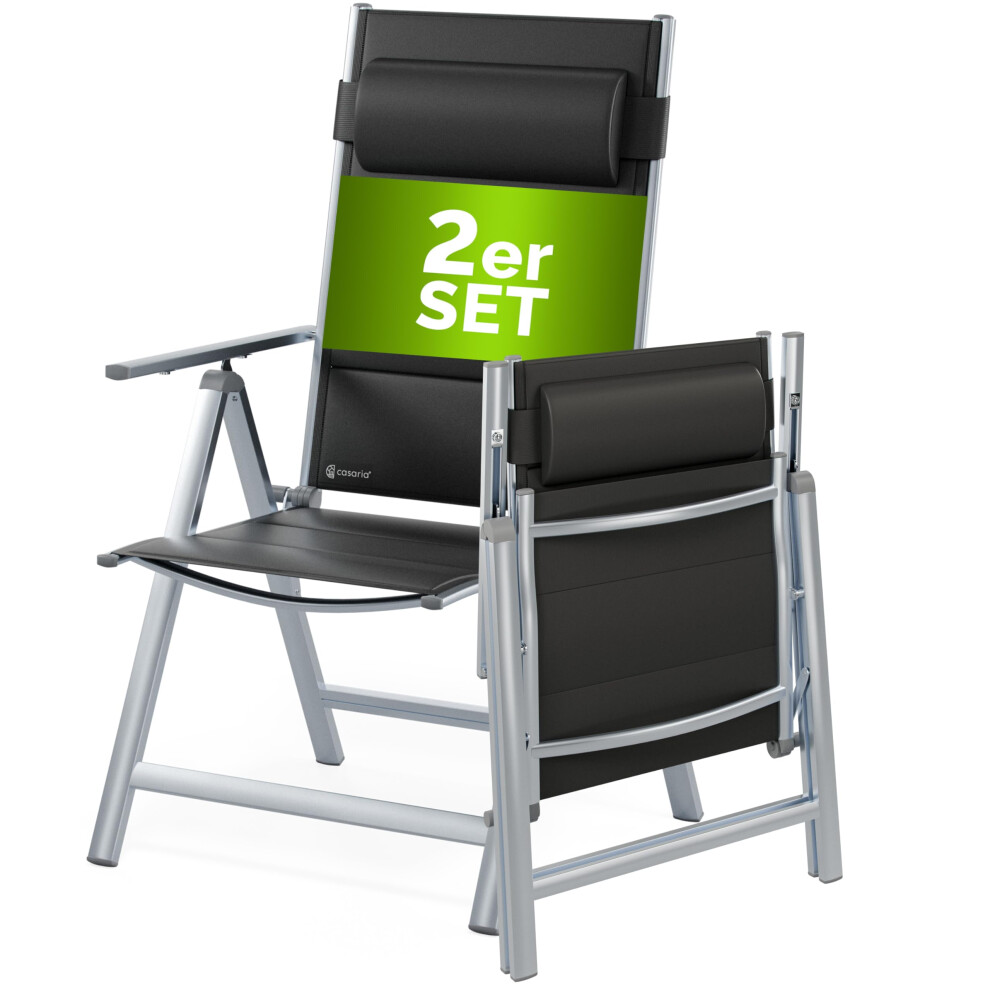 CASARIA? 2x Bern Premium High Back Folding Aluminium Garden Chairs | 8-Point Reclining Padded Armchair | Foldable Lightweight Outdoor Patio Balcony