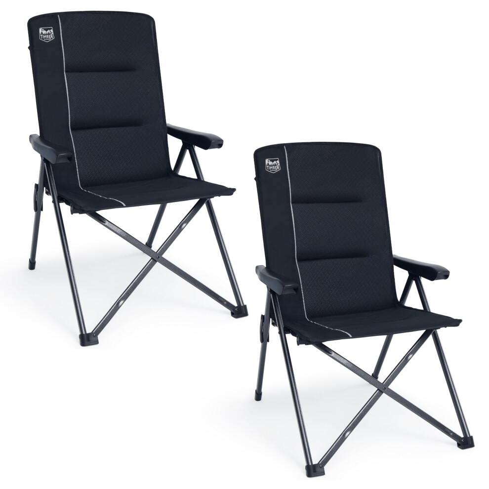 TIMBER RIDGE Folding Camping Chair Set of 2, Adjustable High Back Camping Garden Chairs for Adults 150kg, Portable Collapsible Chairs for Beach Picnic Balcony (Black-2 PCs)
