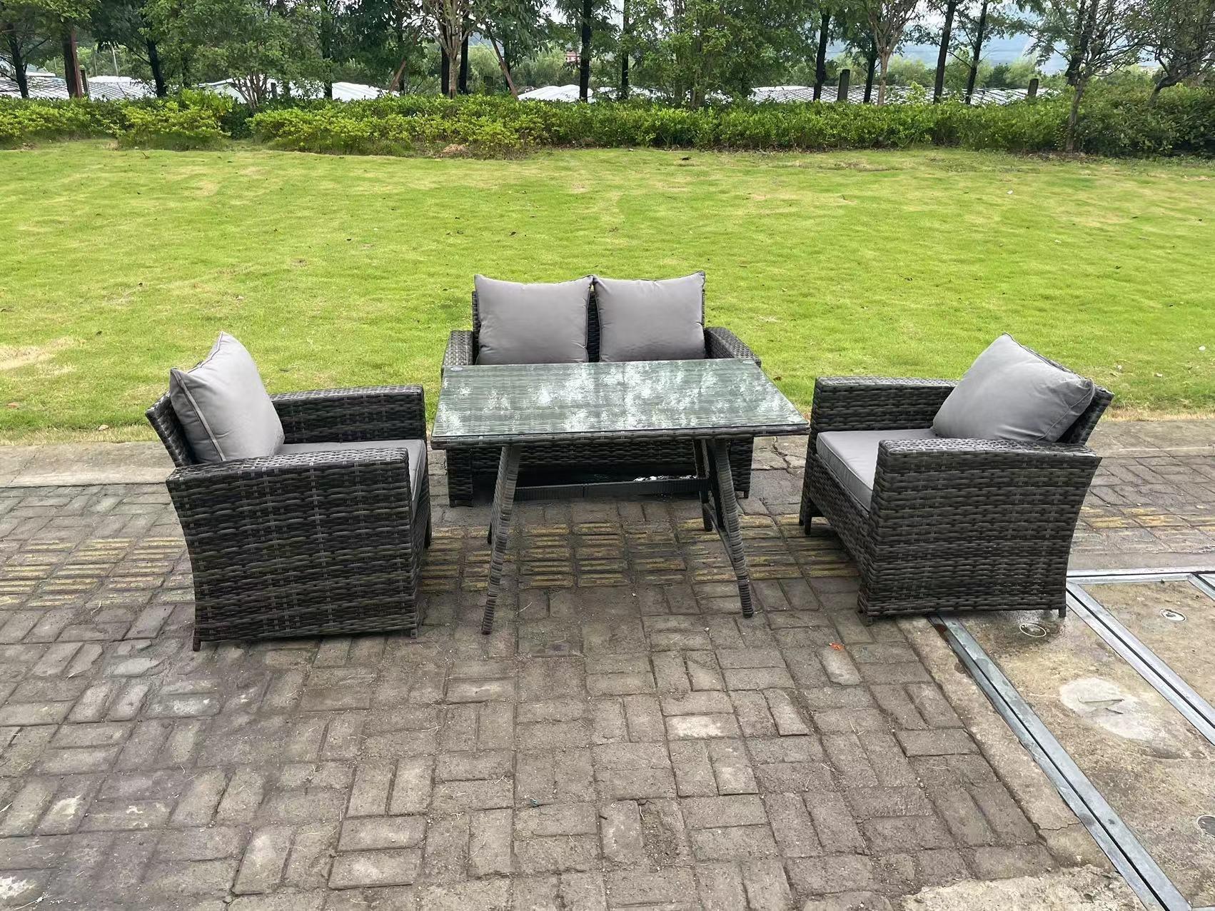 4 Seater Outdoor Dark Grey Mixed High Back Rattan Sofa Dining Table Set Garden Furniture Patio