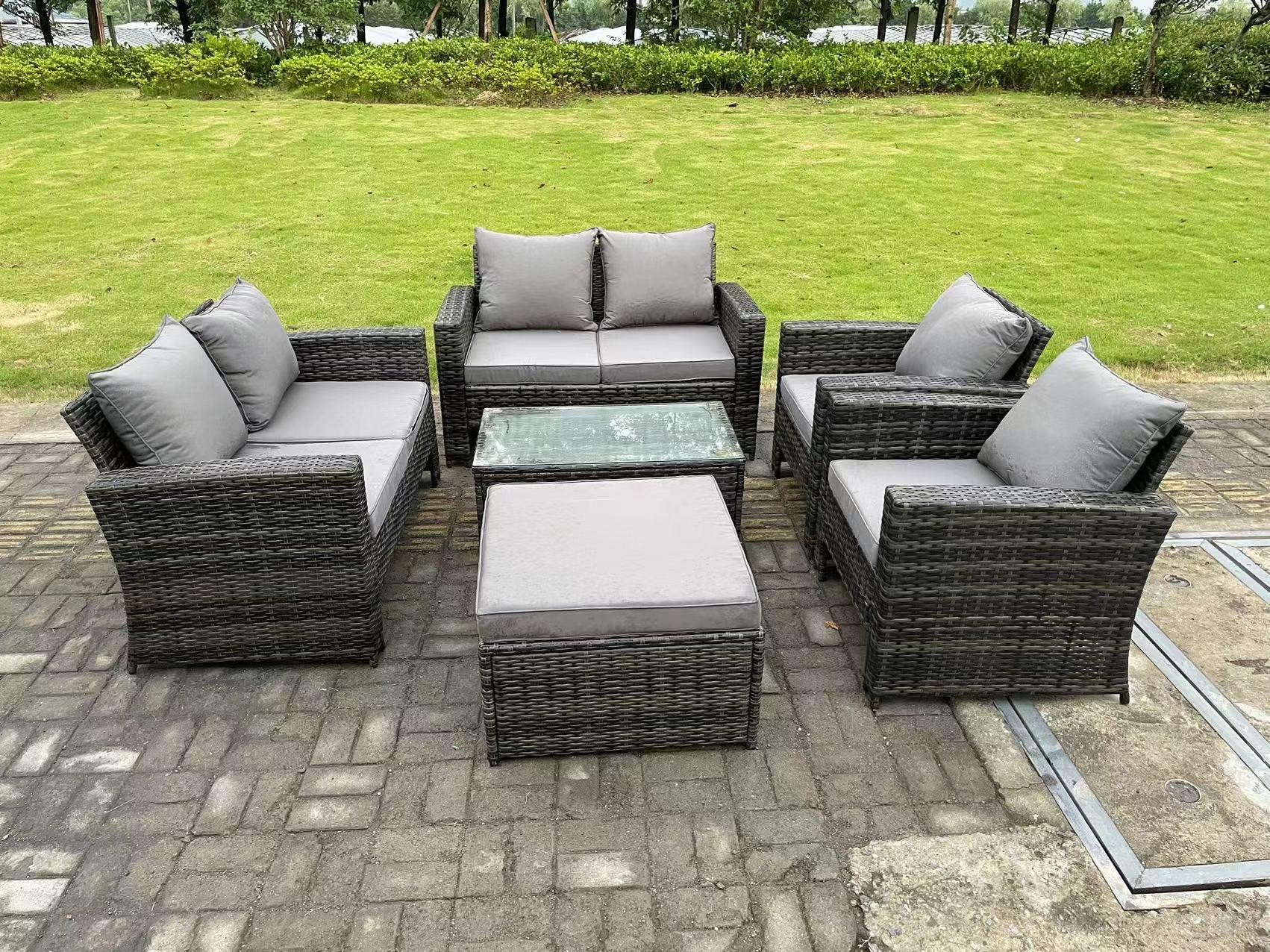 5 Seater Dark Grey Mixed High Back Rattan Sofa Set Square Coffee Table Garden Furniture Outdoor Patio